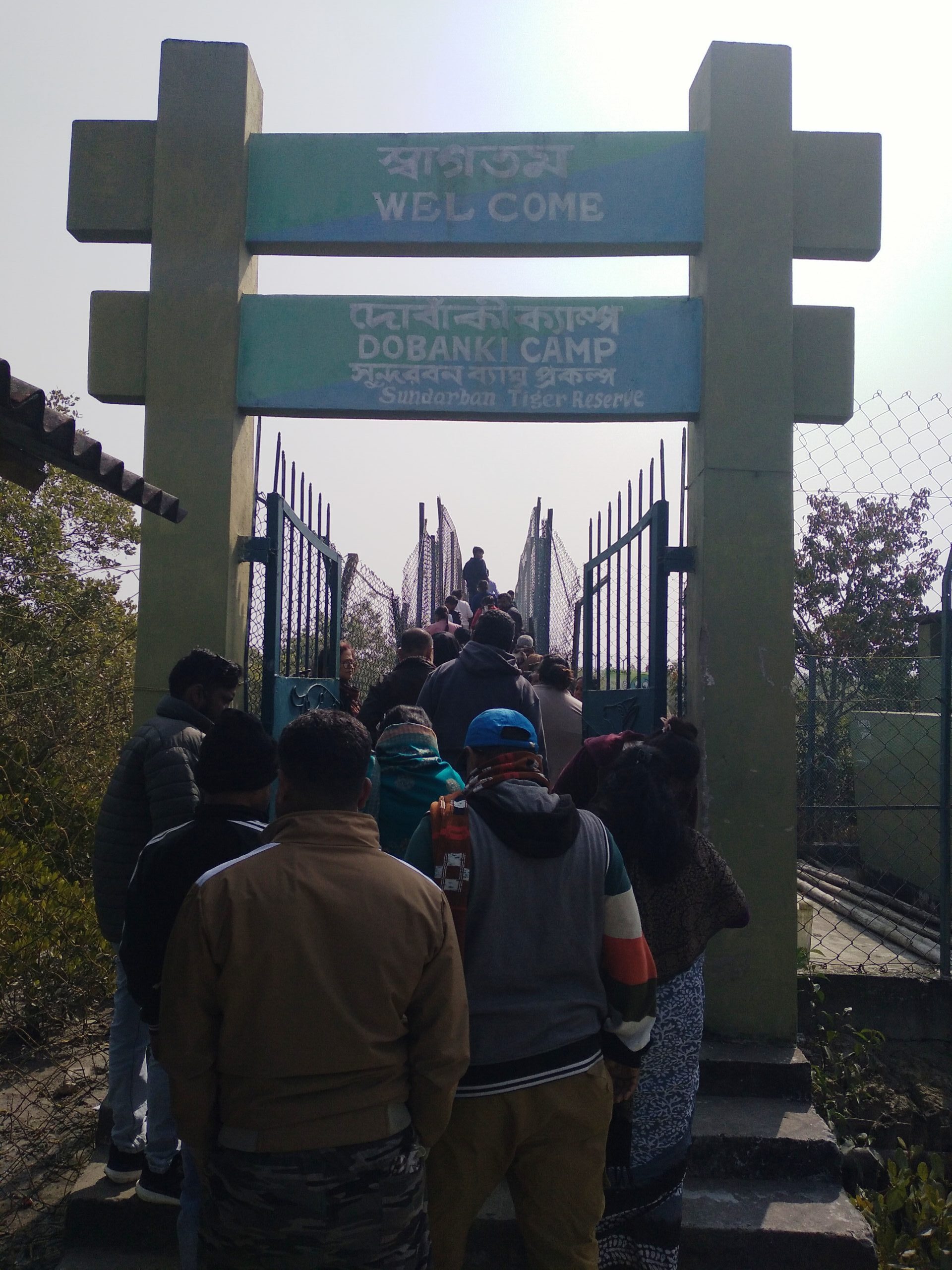Finally, we were taken to Dobanki watch tower for a canopy walk (about half a km long and at a height of about 20 feet from the ground. It resembles a flyover with a 12-ft high side fencing grill and strong net) in the Sunderbans Tiger Reserve.